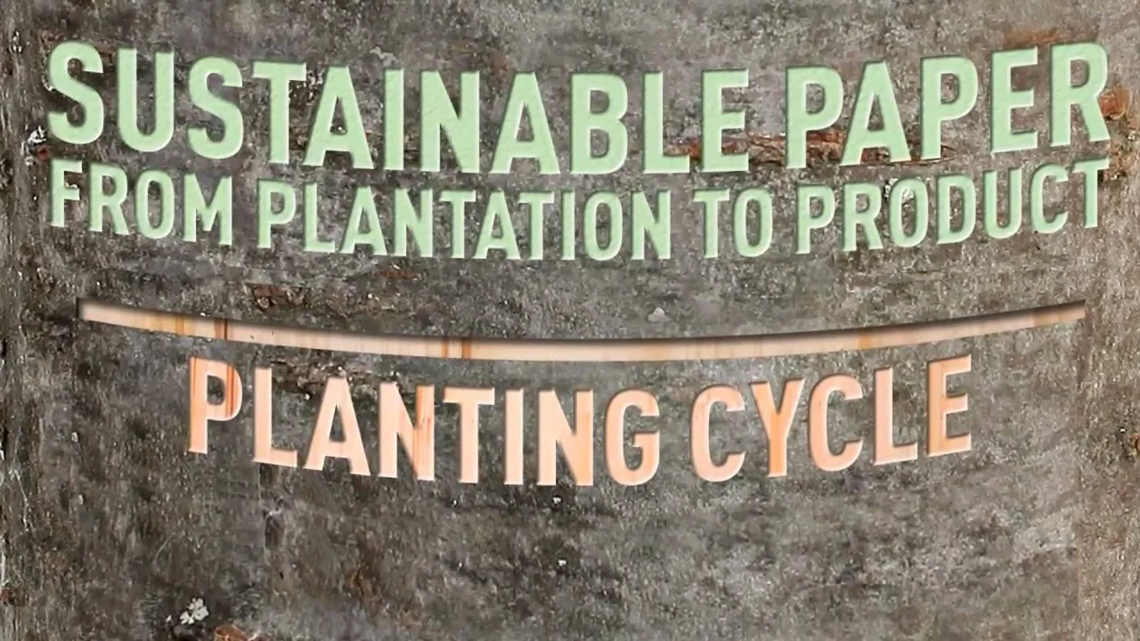 This animation takes viewers through the process and planting cycle for rapidly renewable fiber in equatorial regions like Indonesia, the logistics involved in forestry production and the distribution of pulp, paper and packaging, and the facts about the sustainability of recycled materials versus virgin fiber.