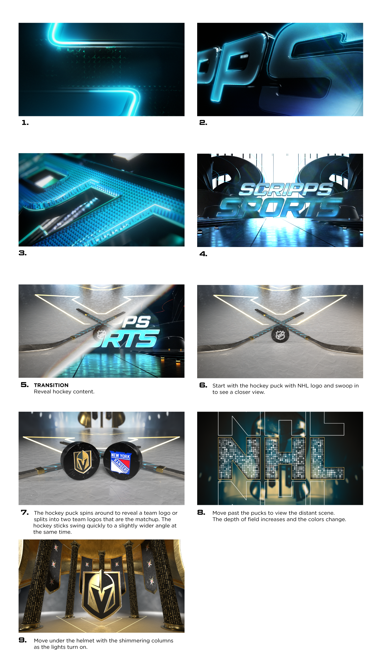 This is a storyboard proposal for the opening to the Golden Knights game opener.