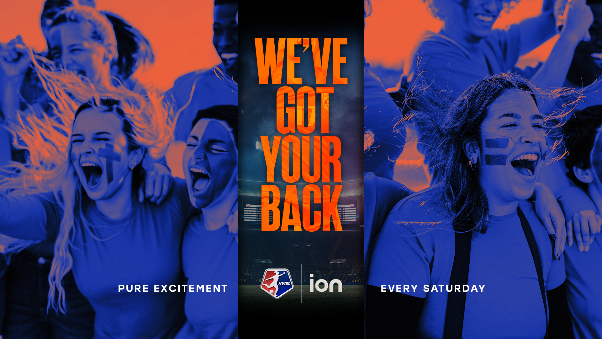 This concept uses team footage in the background with heavily treated effects to make a background for the message. In this case, the team has the back of the fans. The message completes ad it moves up with the three fan panels in the second panel. This might work well if we choose actual NWSL fans and put their names as captions to make this a fan service campaign. If it can’t practically be done for games and promos, it could for social media.